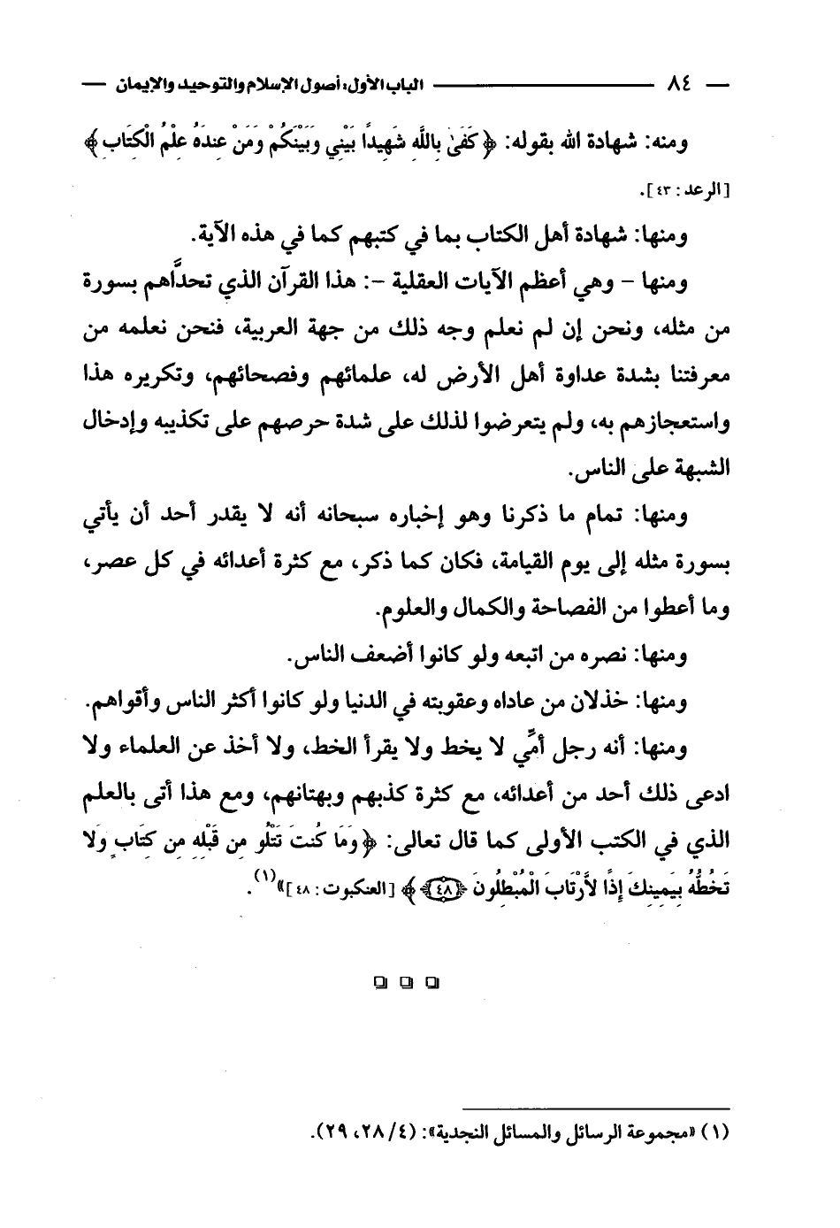 (¬1) «مجموعة الرسائل والمسائل النجدية»: (4/ 28، 29).