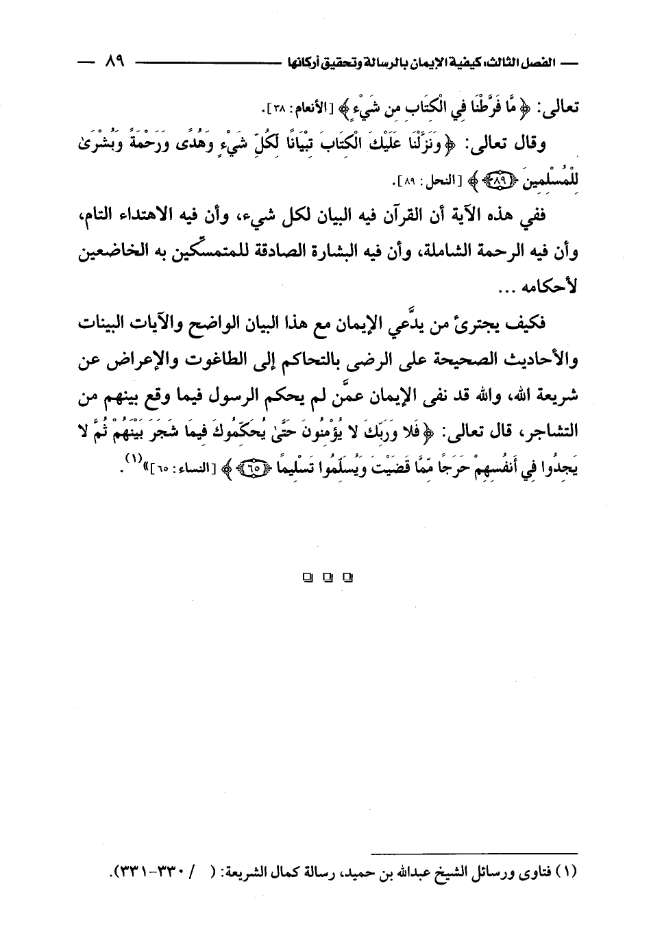 (¬1) فتاوى ورسائل الشيخ عبد الله بن حميد، رسالة كمال الشريعة: (/330 - 331).