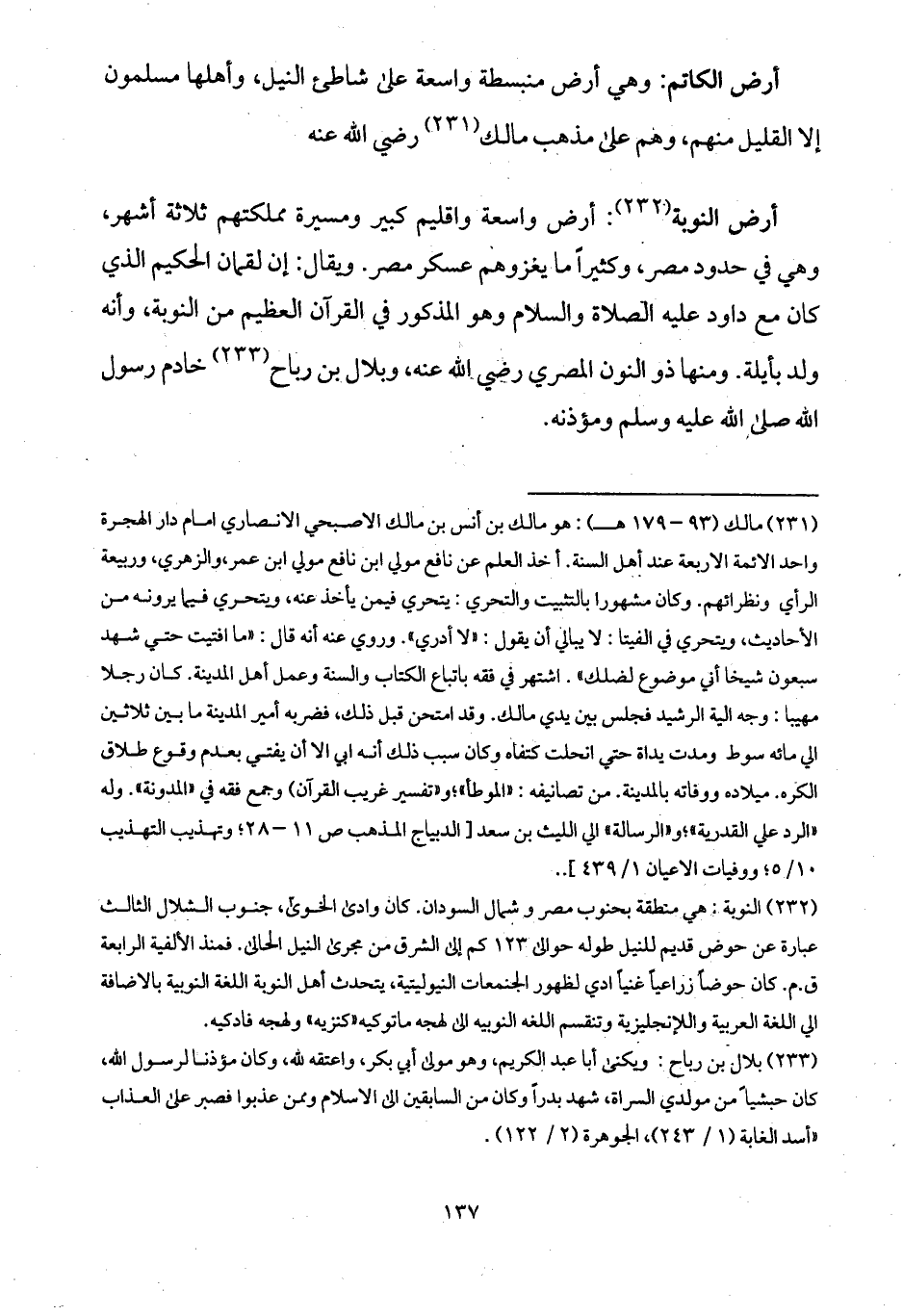 أرض النوبة: أرض واسعة واقليم كبير ومسيرة مملكتهم ثلاثة أشهر، وهي في حدود مصر، وكثيراً ما يغزوهم عسكر مصر. ويقال: إن لقمان الحكيم الذي كان مع داود عليه الصلاة والسلام وهو المذكور في القرآن العظيم من النوبة، وأنه ولد بأيلة. ومنها ذو النون المصري رضي الله عنه، وبلال بن رباح خادم رسول الله صلى الله عليه وسلم ومؤذنه.