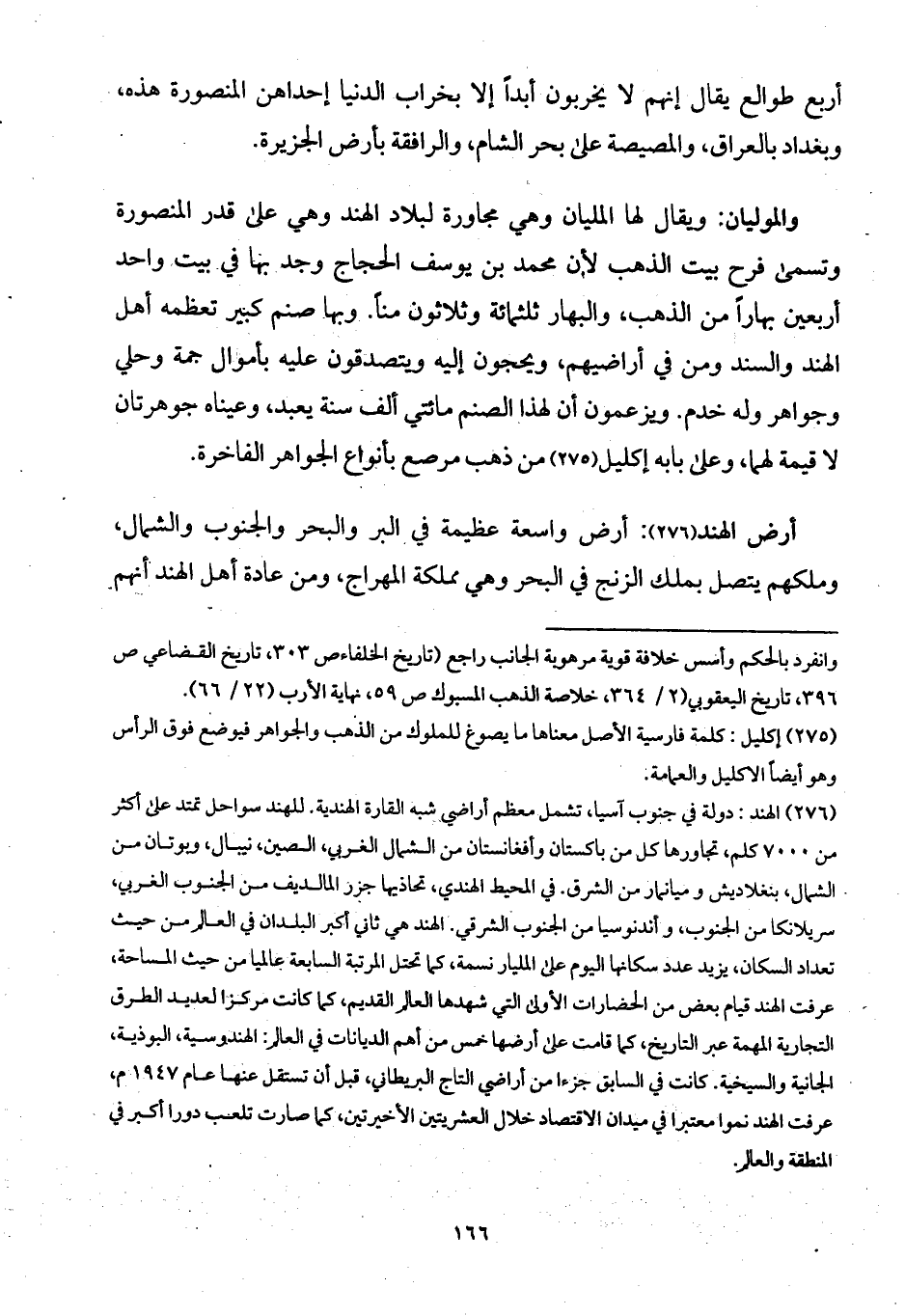 أرض الهند: أرض واسعة عظيمة في البر والبحر والجنوب والشمال، وملكهم يتصل بملك الزنج في البحر وهي مملكة المهراج، ومن عادة أهل الهند أنهم