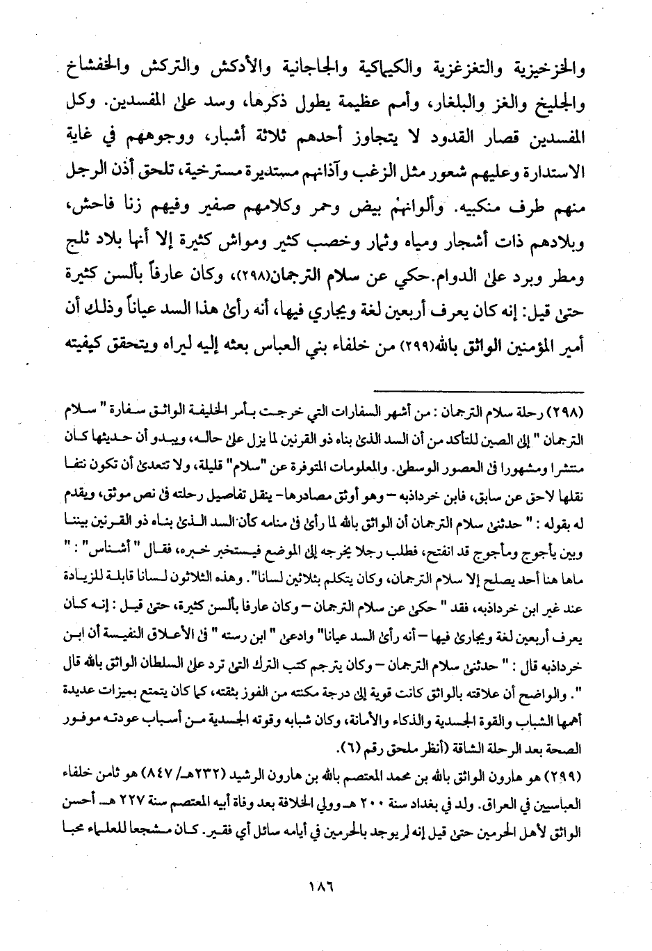 حكي عن سلام الترجمان، وكان عارفاً بألسن كثيرة حتى قيل: إنه كان يعرف أربعين لغة ويجاري فيها، أنه رأى هذا السد عياناً وذلك أن أمير المؤمنين الواثق بالله من خلفاء بني العباس بعثه إليه ليراه ويتحقق كيفيته