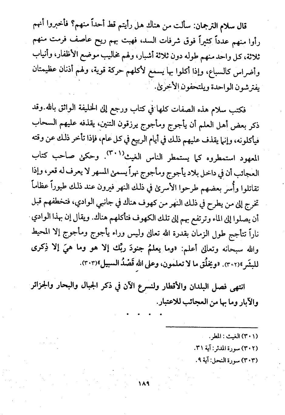 انتهى فصل البلدان والأقطار ولنسرع الآن في ذكر الجبال والبحار والجزائر والآبار وما بها من العجائب للاعتبار.
