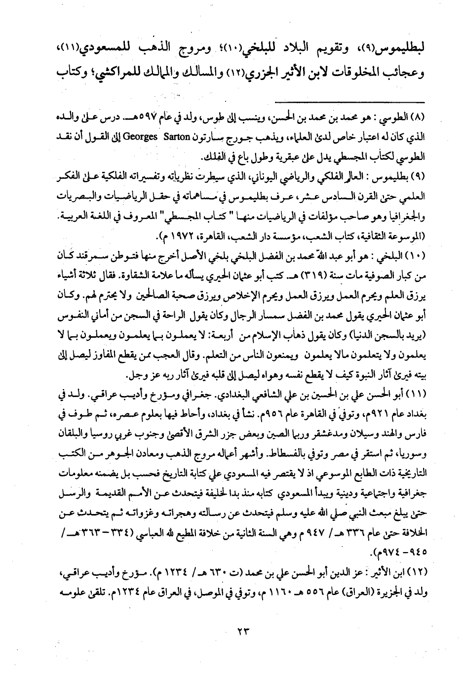 لبطليموس، وتقويم البلاد للبلخي؛ ومروج الذهب للمسعودي، وعجائب المخلوقات لابن الأثير الجزري والمسالك والممالك للمراكشي؛ وكتاب