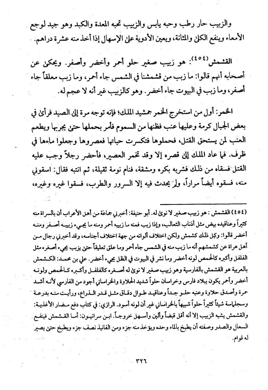 الخمر: أول من استخرج الخمر جمشيد الملك؛ فإنه توجه مرة إلى الصيد فرأى في بعض الجبال كرمة وعليها عنب فظنها من السموم فأمر بحملها حتى يجربها ويطعم العنب لمن يستحق القتل، فحملوها فتكسرت حباتها فعصروها وجعلوا ماءها في ظرف. فما عاد الملك إلى قصره إلا وقد تخمر العصير، فأحضر رجلاً وجب عليه القتل فسقاه من ذلك فشربه بكره ومشقة، فنام نومة ثقيلة، ثم انتبه فقال: اسقوني منه، فسقوه أيضاً مراراً، ولم يحدث فيه إلا السرور والطرب، فسقوا غيره وغيره،