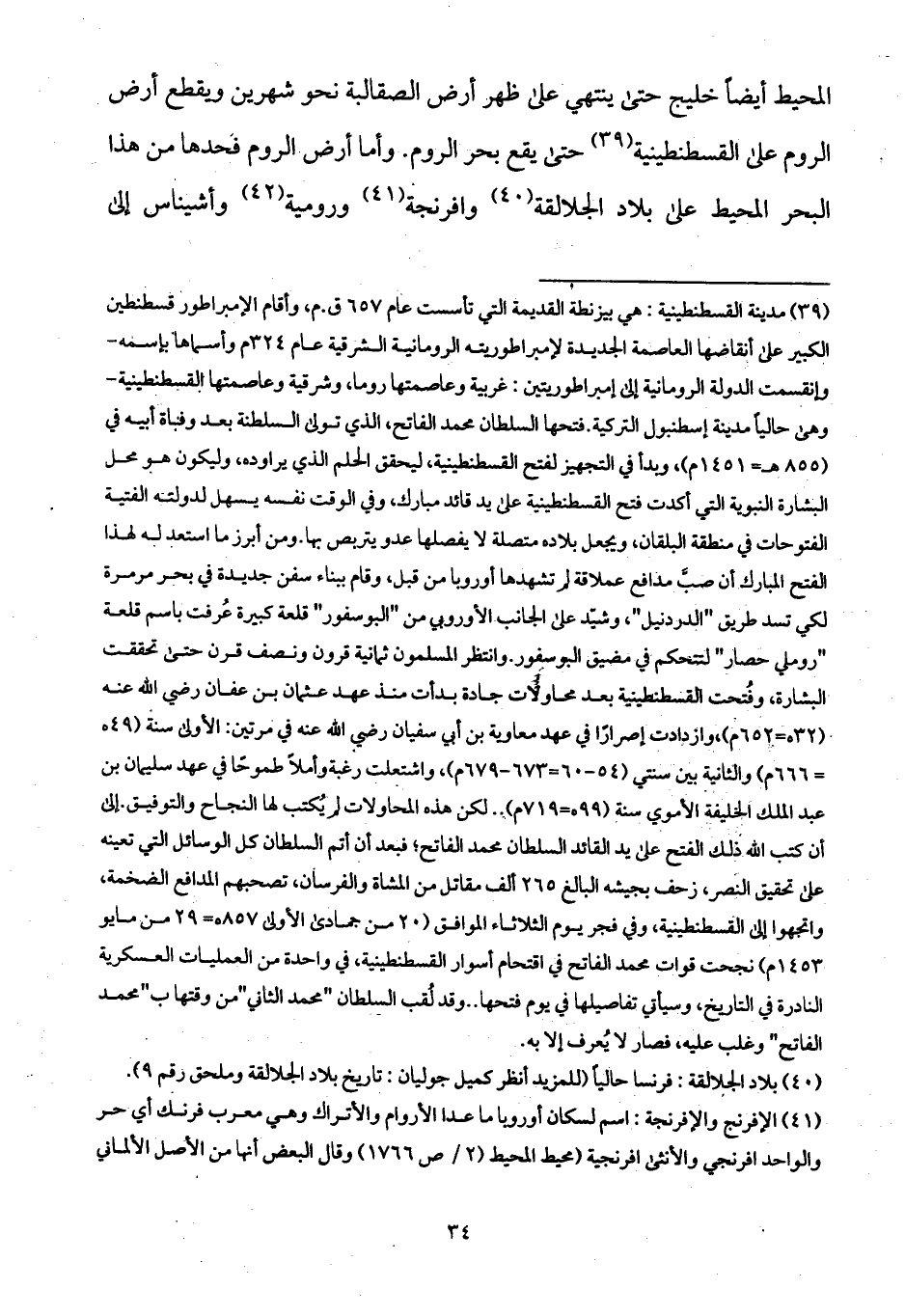 المحيط أيضاً خليج حتى ينتهي على ظهر أرض الصقالبة نحو شهرين ويقطع أرض الروم على القسطنطينية حتى يقع بحر الروم. وأما أرض الروم فحدها من هذا البحر المحيط على بلاد الجلالقة وافرنجة ورومية وأشيناس إلى