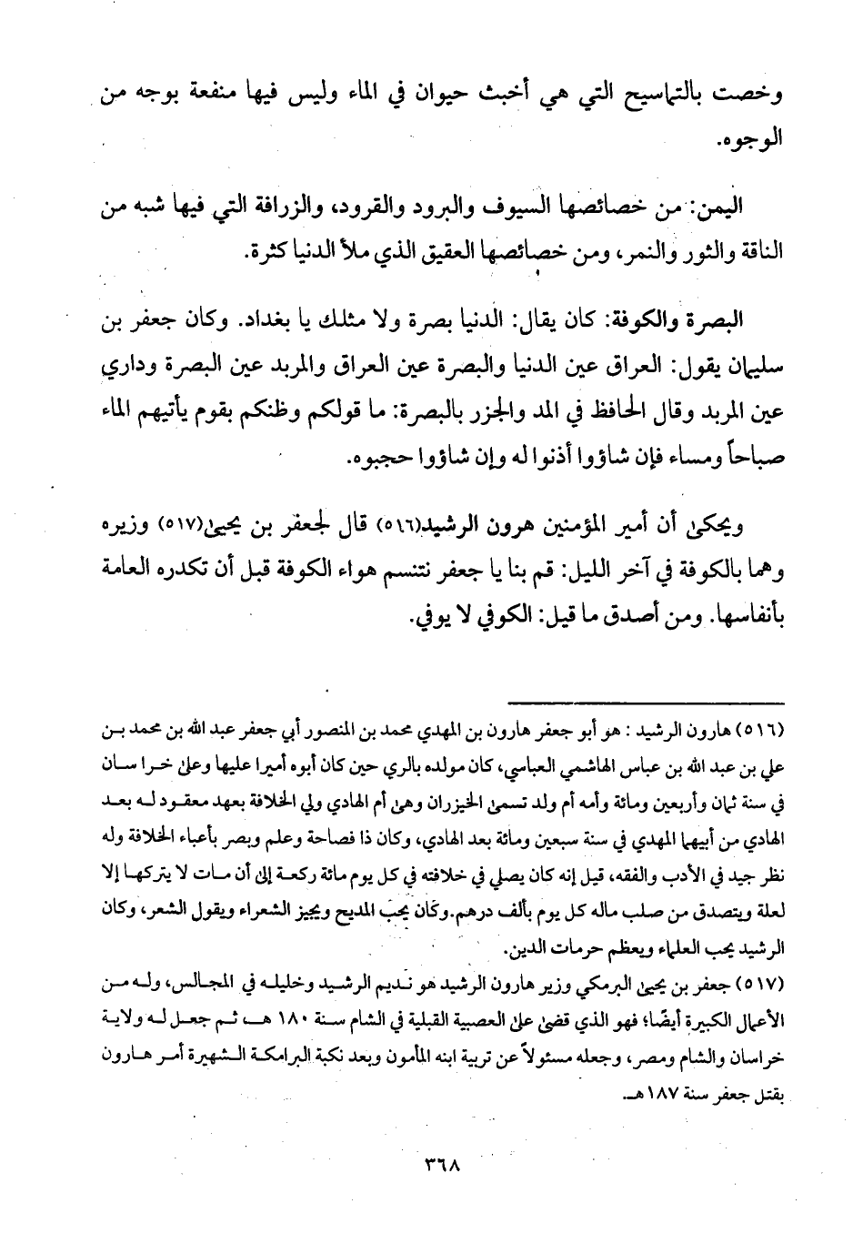 اليمن: من خصائصها السيوف والبرود والقرود، والزرافة التي فيها شبه من الناقة والثور والنمر، ومن خصائصها العقيق الذي ملأ الدنيا كثرة.