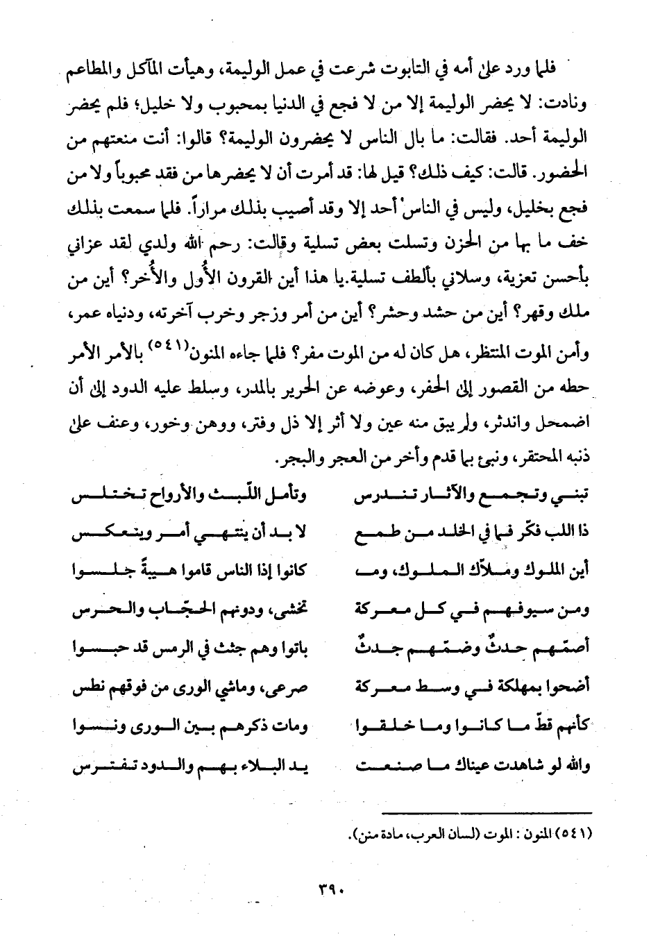يا هذا أين القرون الأُول والأُخر؟ أين من ملك وقهر؟ أين من حشد وحشر؟ أين من أمر وزجر وخرب آخرته، ودنياه عمر، وأمن الموت المنتظر، هل كان له من الموت مفر؟ فلما جاءه المنون بالأمر الأمر حطه من القصور إلى الحفر، وعوضه عن الحرير بالمدر، وسلط عليه الدود إلى أن اضمحل واندثر، ولم يبق منه عين ولا أثر إلا ذل وفتر، ووهن وخور، وعنف على ذنبه المحتقر، ونبئ بما قدم وأخر من العجر والبجر.