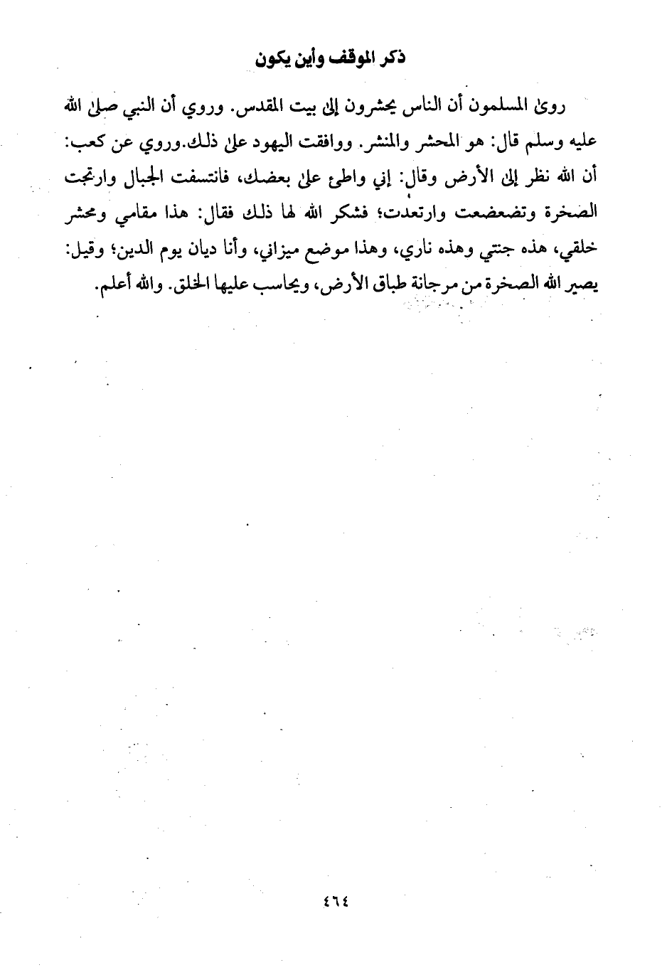 روى المسلمون أن الناس يحشرون إلى بيت المقدس. وروي أن النبي صلى الله عليه وسلم قال: هو المحشر والمنشر. ووافقت اليهود على ذلك.