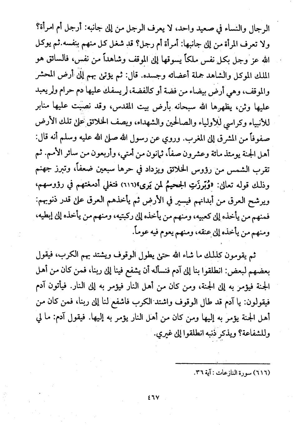 الرجال والنساء في صعيد واحد، لا يعرف الرجل من إلى جانبه: أرجل أم امرأة؟ ولا تعرف المرأة من إلى جانبها: أمرأة أم رجل؟ قد شغل كل منهم بنفسه.