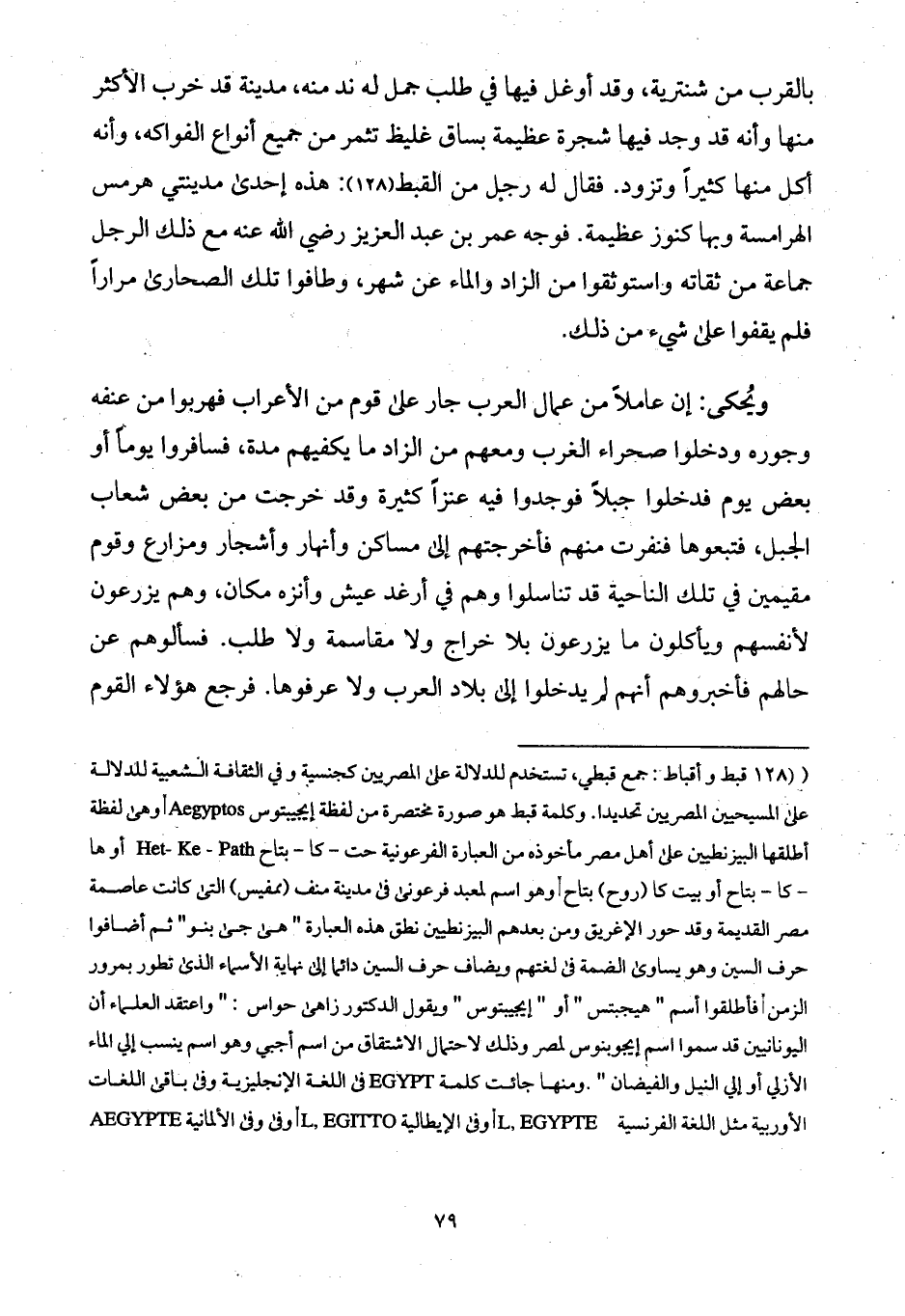 بالقرب من شنترية، وقد أوغل فيها في طلب جمل له ند منه، مدينة قد خرب الأكثر منها وأنه قد وجد فيها شجرة عظيمة بساق غليظ تثمر من جميع أنواع الفواكه، وأنه أكل منها كثيراً وتزود. فقال له رجل من القبط: هذه إحدى مدينتي هرمس الهرامسة وبها كنوز عظيمة. فوجه عمر بن عبد العزيز رضي الله عنه مع ذلك الرجل جماعة من ثقاته واستوثقوا من الزاد والماء عن شهر، وطافوا تلك الصحارى مراراً فلم يقفوا على شيء من ذلك.