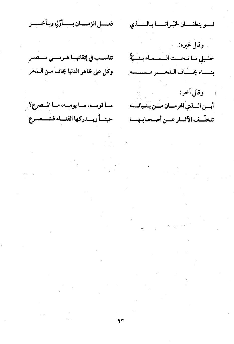 لو ينطقان لخبّرانا بالذي ... فعل الزمان بأوّلٍ وبآخر