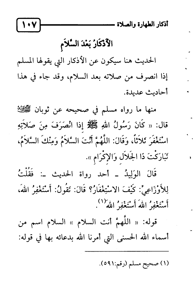 الأَذْكَارُ بَعْدَ السَّلاَمِ
