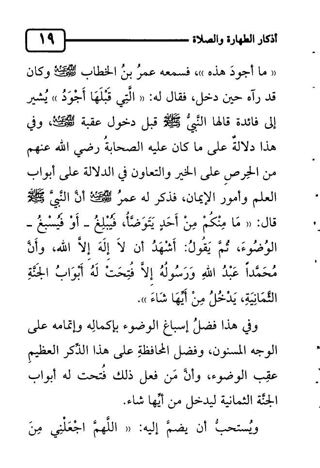 غير التسمية، وكلُّ حديث في أذكار الوضوء الذي يُقال عليه فكذبٌ مختلق لَم يقلْ رسول الله صلى الله عليه وسلم شيئاً منه"1، ثم استثنى رحمه الله حديثَ التسمية وحديثَي عمر وأبي سعيد المتقدِّمين.
