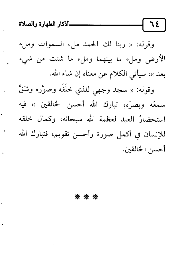 وقوله: "ربنا لك الحمد ملء السموات وملء الأرض وملء ما بينهما وملء ما شئت من شيء