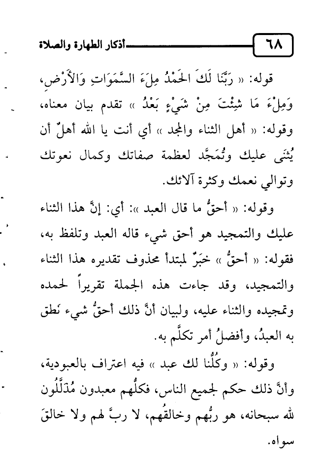 قوله: "رَبَّنَا لَكَ الحَمْدُ مِلَءَ السَّمَوَاتِ وَالأَرْضِ، وَمِلْءَ مَا شِئْتَ مِنْ شَيْءٍ بَعْدُ" تقدم بيان معناه، وقوله: "أهل الثناء والمجد" أي أنت يا الله أهلٌ أن يُثنَى عليك وتُمَجَّد لعظمة صفاتك وكمال نعوتك وتوالي نعمك وكثرة آلائك.