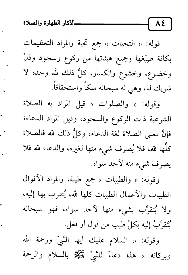 وقوله: "والصلوات" قيل المراد به الصلاة الشرعية ذات الركوع والسجود، وقيل المراد الدعاء؛ فإنَّ معنى الصلاة لغة الدعاء، وكلُّ ذلك لله فالصلاة كلُّها لله، فلا يُصرف شيء منها لغيره، والدعاء لله فلا يصرف شيء منه لأحد سواه.