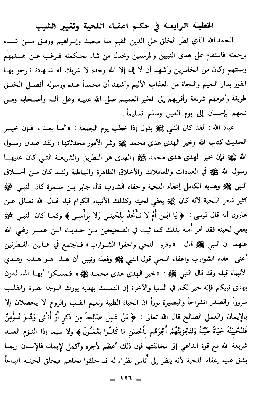 [الخطبة الرابعة في حكم اعفاء اللحية وتغيير الشيب]