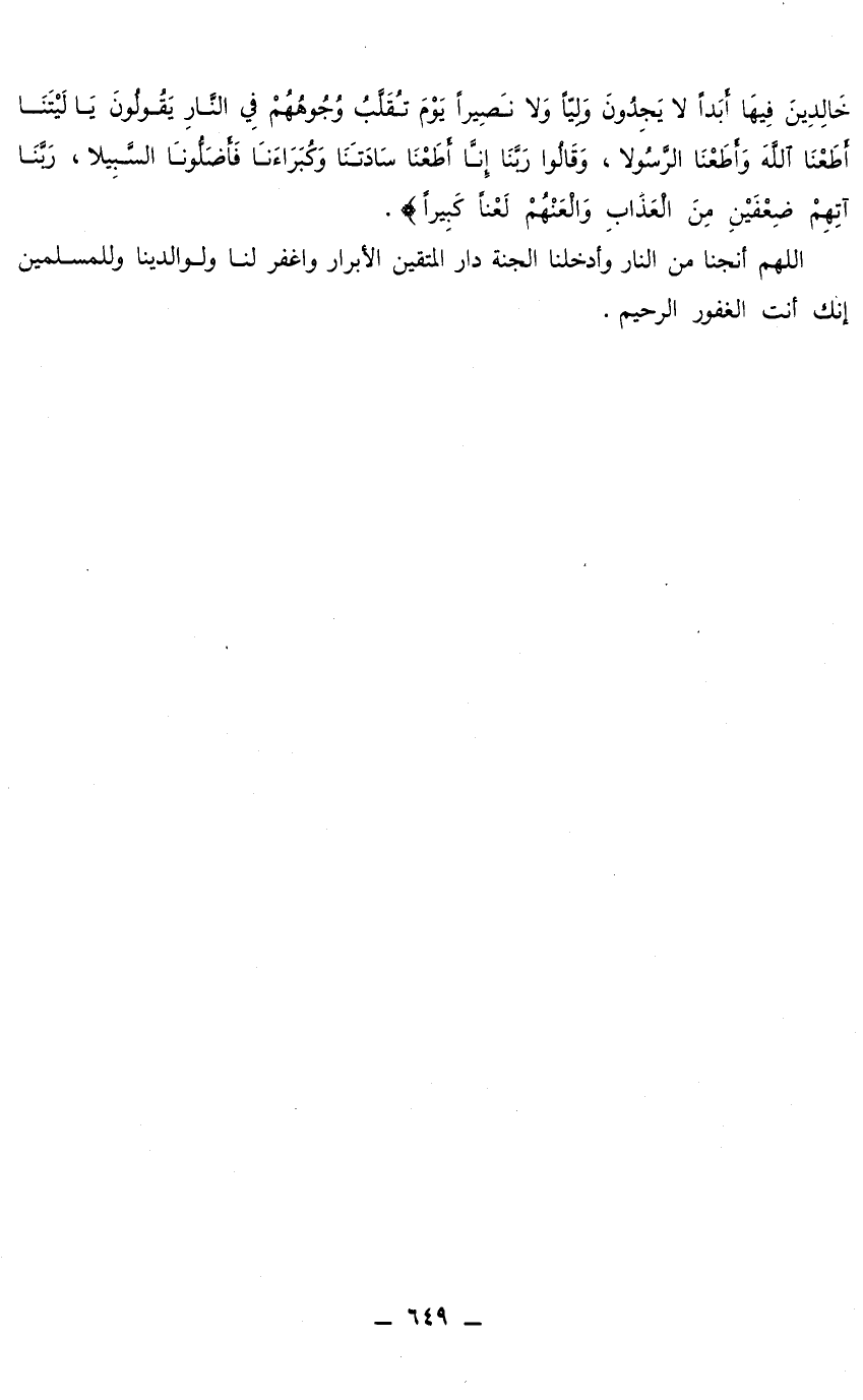 اللهم أنجنا من النار وأدخلنا الجنة دار المتقين الأبرار واغفر لنا ولوالدينا وللمسلمين إنك أنت الغفور الرحيم.