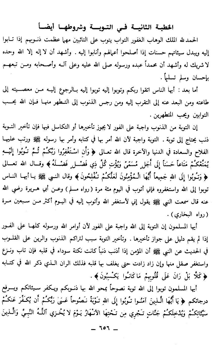 [الخطبة الثانية في التوبة وشروطها أيضا]