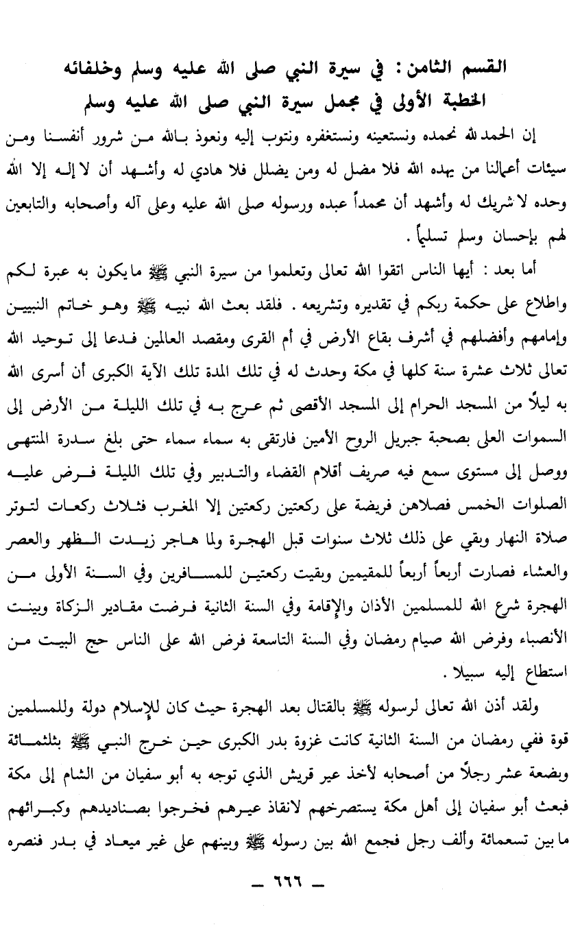 في سيرة النبي صلى الله عليه وسلم وخلفائه الخطبة الأولى