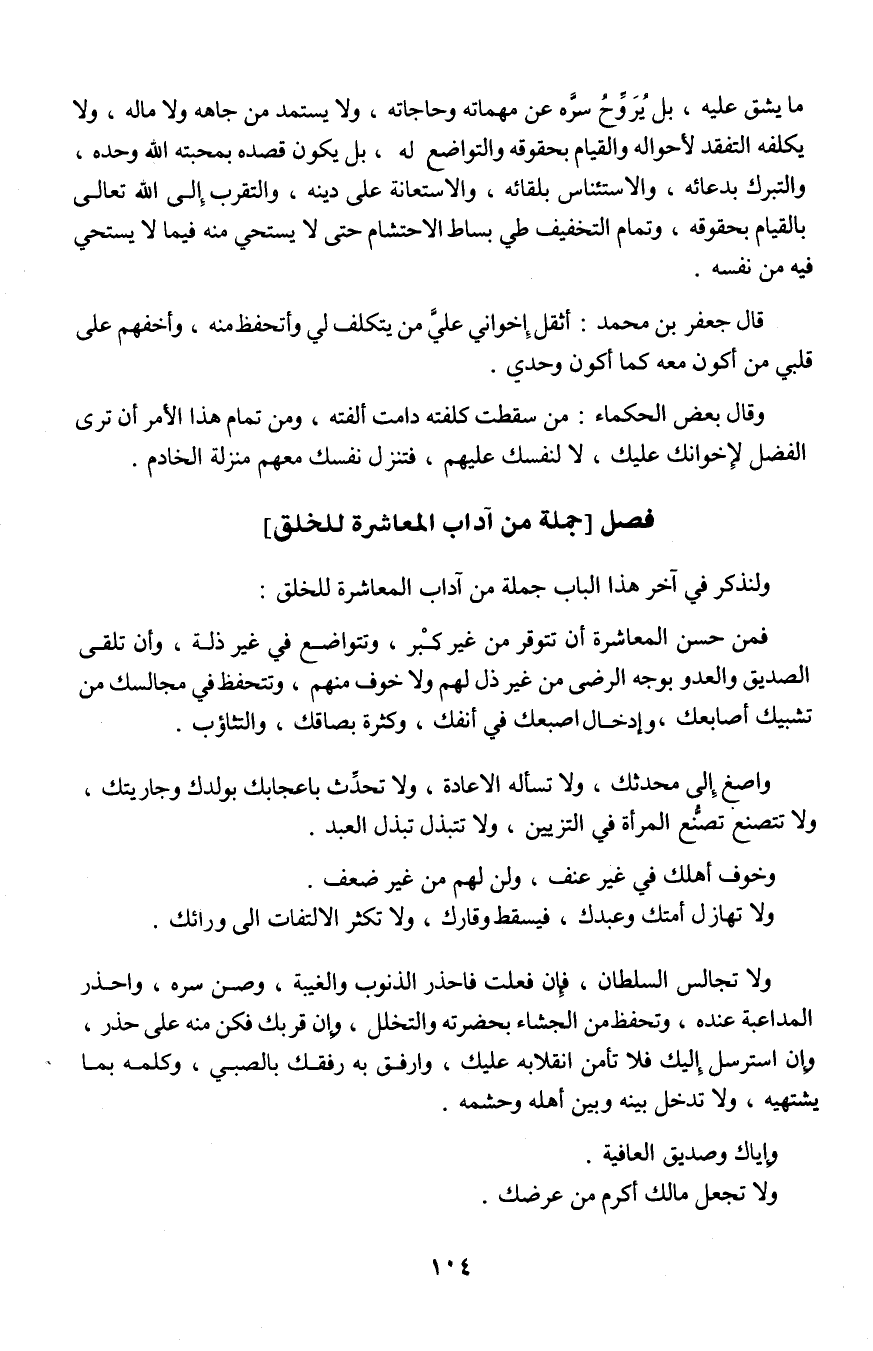 3 ـ فصل [جملة من آداب المعاشرة للخلق]