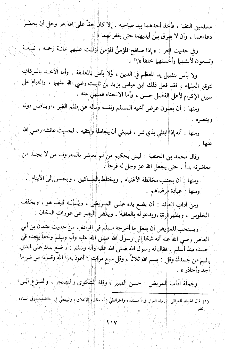 وفى حديث آخر: "إذا صافح المؤمن المؤمن نزلت عليهما مائة رحمة، تسعة وتسعون لأبشهما وأحسنهما خلقاً" (¬1).