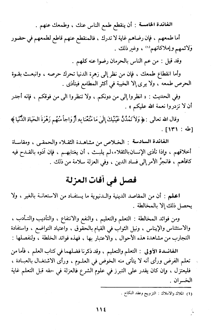 2 ـ فصل في آفات العزلة