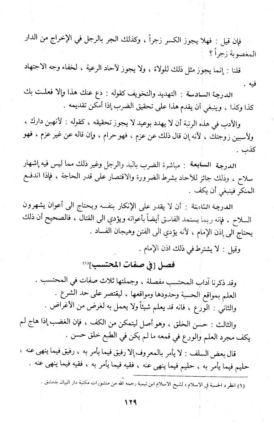 (¬1) انظر "الحسبة في الإسلام" لشيخ الإسلام ابن تيمية رحمه الله من منشورات مكتبة دار البيان بدمشق.