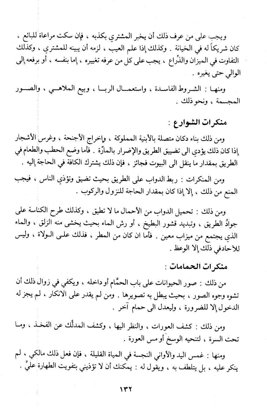 ومن المنكرات: ربط الدواب على الطريق بحيث تضيق وتؤذى الناس، فيجب المنع من ذلك، إلا إذا كان بمقدار الحاجة للنزول والركوب.