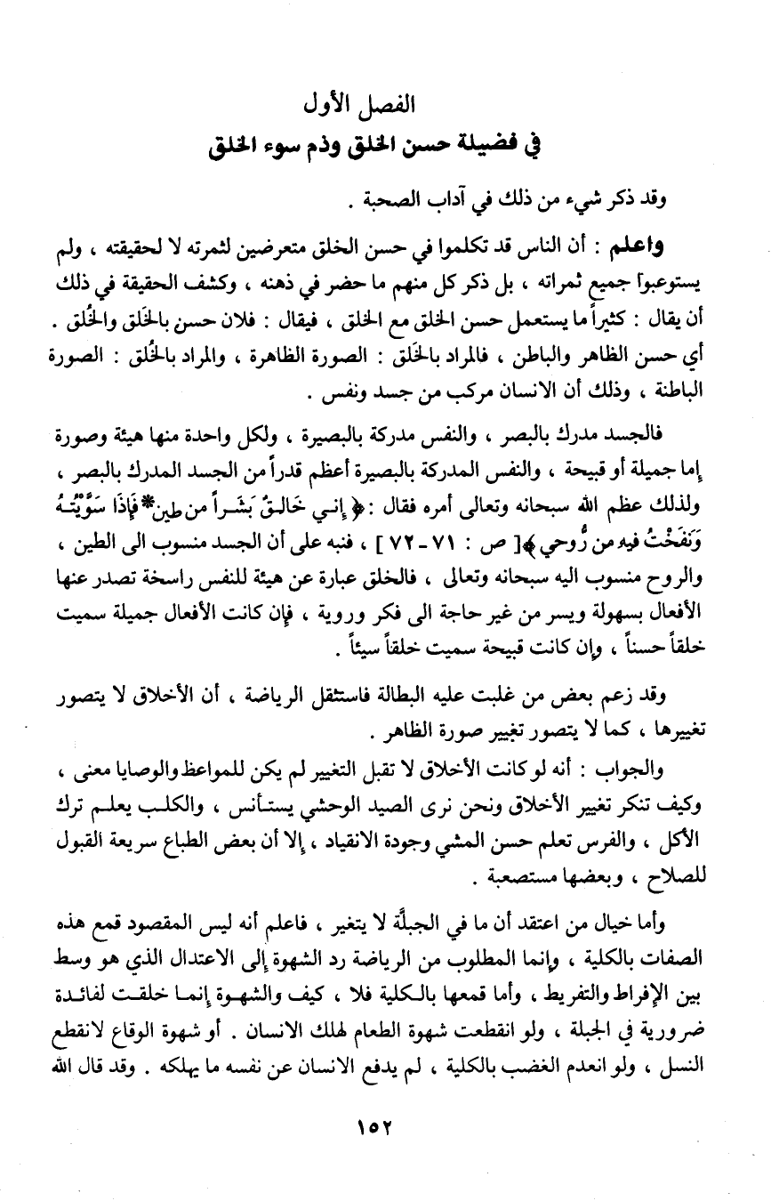 1 ـ الفصل الأول في فضيلة حسن الخلق وذم سوء الخلق
