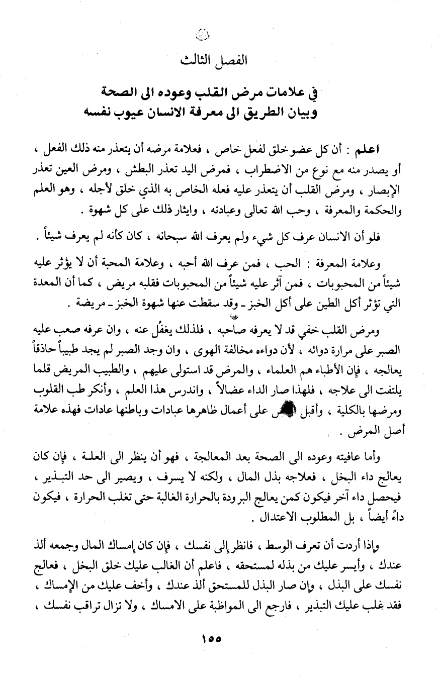3 ـ الفصل الثالث: في علامات مرض القلب وعوده إلى الصحة وبيان الطريق إلى معرفة الإنسان عيوب نفسه