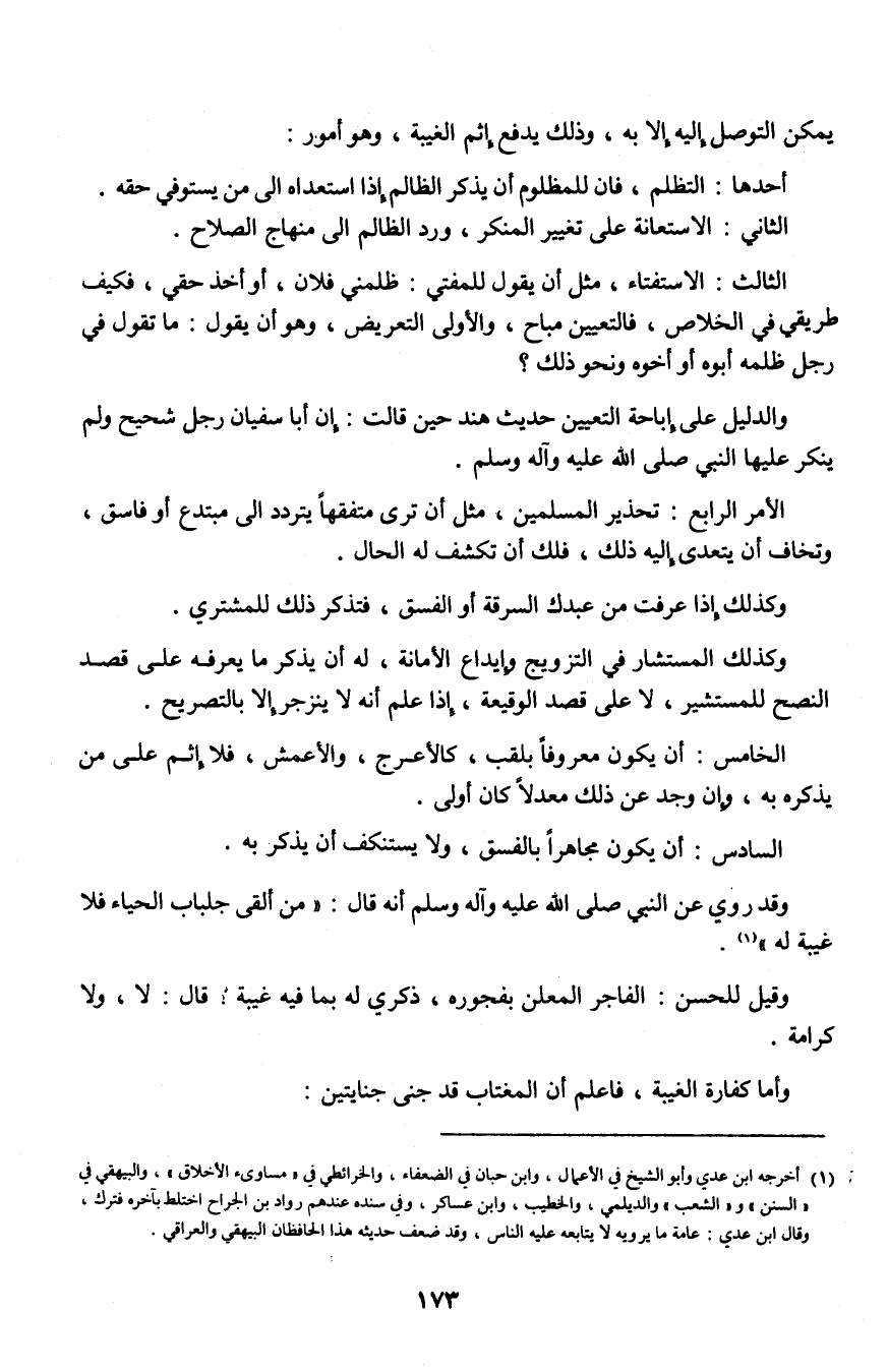 يمكن التوصل إليه إلا به، وذلك يدفع إثم الغيبة، وهو أمور:
