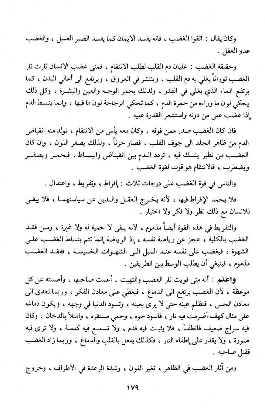 والناس في قوة الغضب على درجات ثلاث: إفراط، وتفريط، واعتدال.