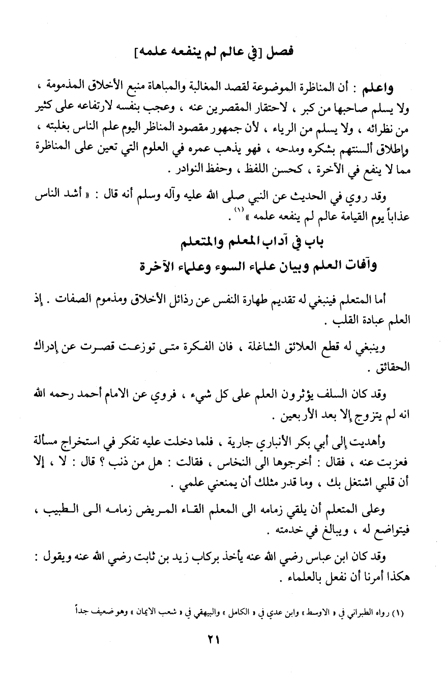 5 ـ باب فى آداب المعلم والمتعلم وآفات العلم وبيان علماء السوء وعلماء الآخرة