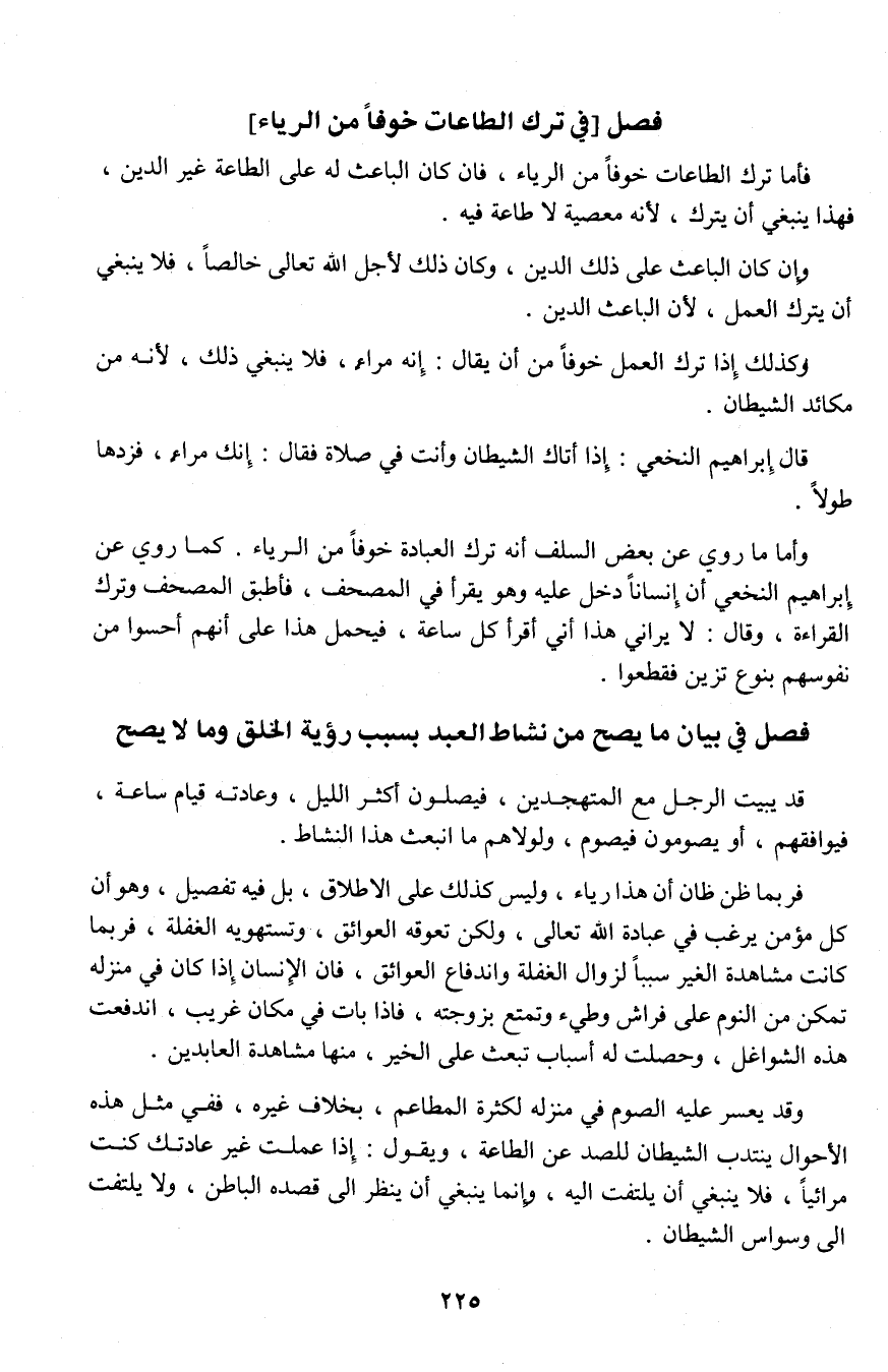 6 ـ فصل [في ترك الطاعات خوفاً من الرياء]