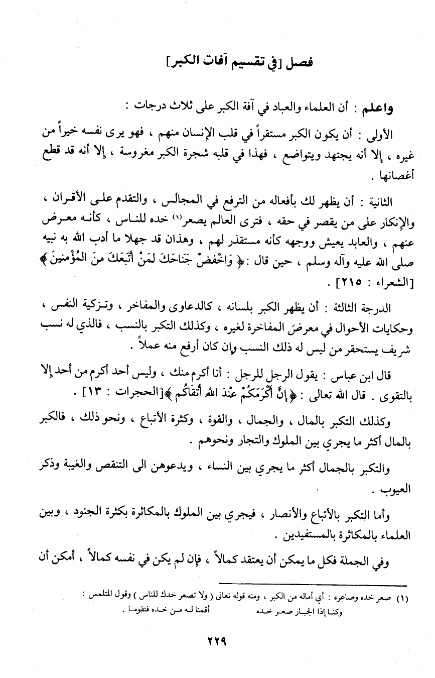 واعلم: أن العلماء والعباد في آفة الكبر على ثلاثة درجات:
