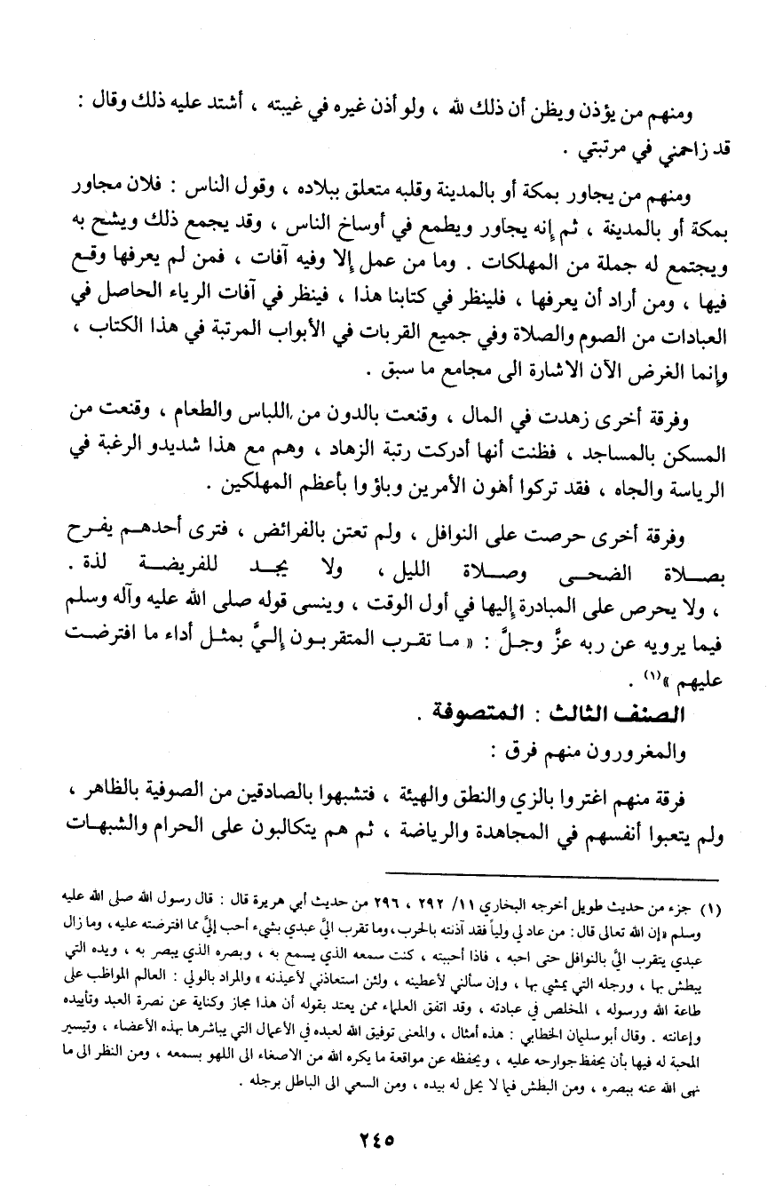 فرقة منهم اغتروا بالزي والنطق والهيئة، فتشبهوا بالصادقين من الصوفية بالظاهر، ولم يتعبوا أنفسهم في المجاهدة والرياضة، ثم هم يتكالبون على الحرام والشبهات