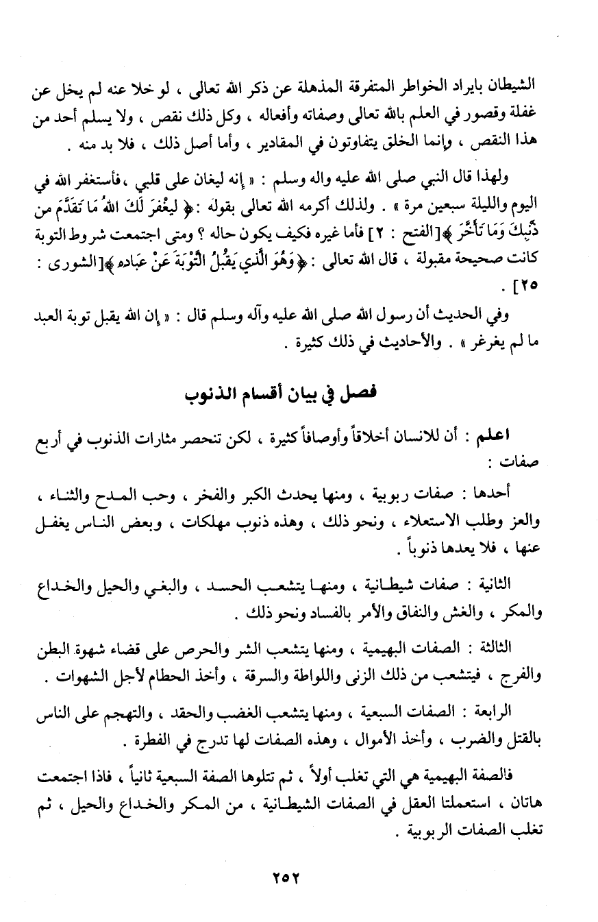 أعلم: أن للإنسان أخلاقاً وأوصافاً كثيرة، لكن تنحصر مثارات الذنوب في أربع صفات: