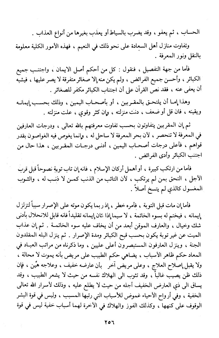 فأما إن مات قبل التوبة، فأمره خطر، إذ ربما يكون موته على الإصرار سبباً لتزلزل إيمانه، فيختم له بسوء الخاتمة، لا سيما إذا كان إيمانه تقليداً فإنه قابل للانحلال بأدنى شك وخيال، والعارف الموقن أبعد من أن يخاف عليه سوء الخاتمة. ثم إن عذاب الميت عن غير توبة يكون بحسب قبح الكبائر ومدة الإصرار. ثم ينزل البله المقلدون الجنة، وينزل العارفون المستبصرون أعلى عليين، وما ذكرناه من مراتب العباد في المعاد حكم ظاهر الأسباب، يضاهى حكم الطبيب على مريض بأنه يموت لا محالة، ولا يقبل إصلاح العلاج، وعلى مريض آخر بأن عارضه خفيف، وعلاجه هيَّن، فإن ذلك ظن يصيب غالباً، وقد تثوب إلى الهلاك نفسه من حيث لا يشعر الطبيب، وقد يساق إلى ذي العارض الخفيف أجله من حيث لا يطلع عليه، وذلك لأسرار الله تعالى الخفية، وفى أرواح الأحياء غموض للأسباب التي رتبها المسبب، وليس في قوة البشر الوقوف على كنهها، وكذلك الفوز والهلاك في الآخرة لهما أسباب خفية ليس في قوة