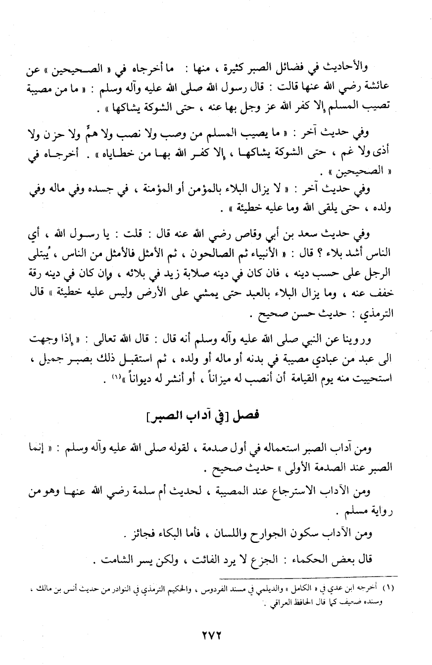 2 ـ فصل [في آداب الصبر]