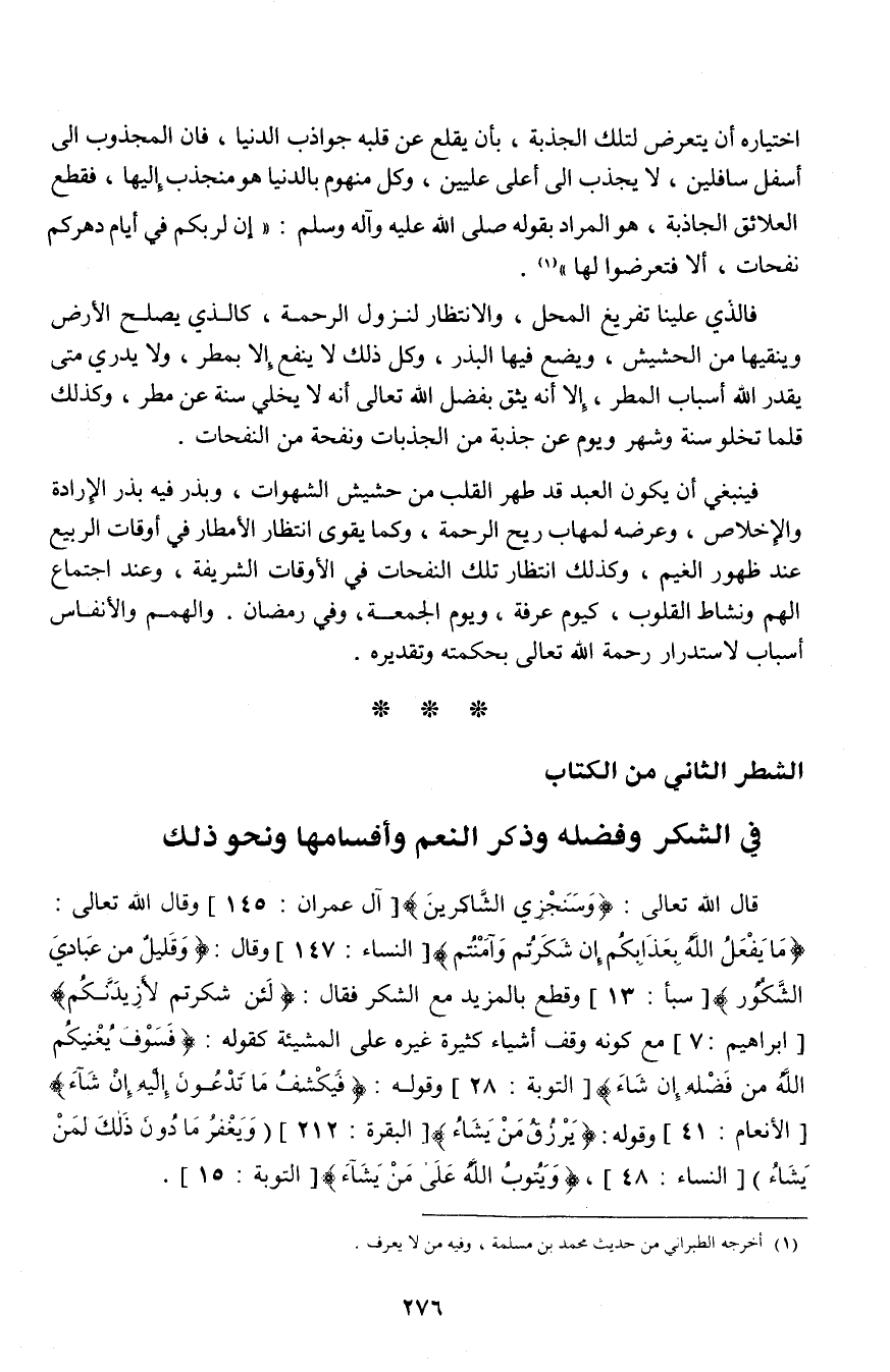 4 ـ في الشكر وفضله وذكر النعم وأقسامها ونحو ذلك
