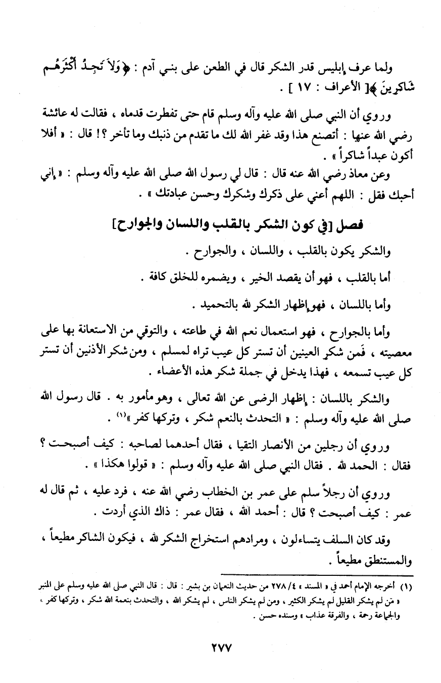5 ـ فصل [في كون الشكر بالقلب واللسان والجوارح]