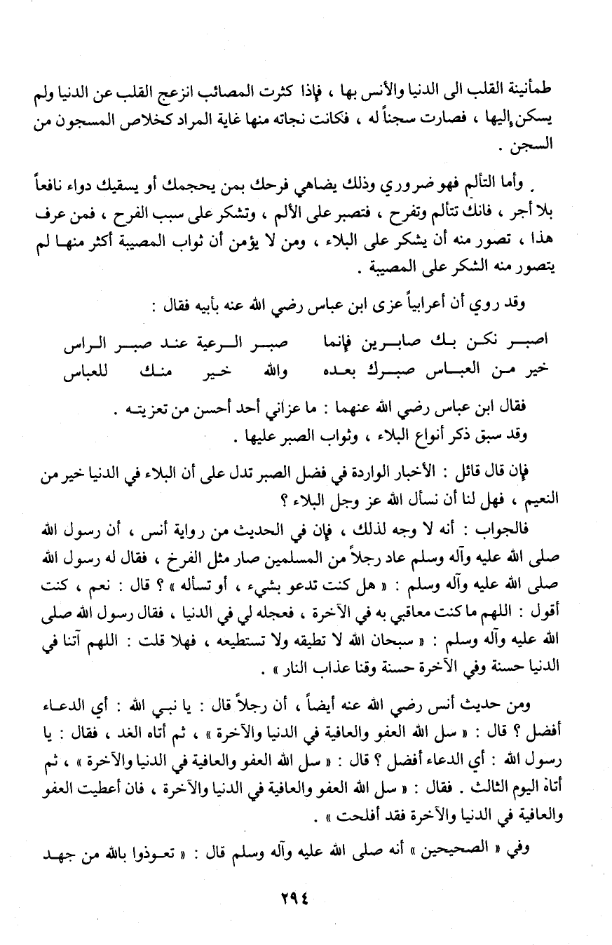 فإن قال قائل: الأخبار الواردة في فضل الصبر تدل على أن البلاء في الدنيا خير من النعيم، فهل لنا أن نسأل الله عز وجل البلاء؟