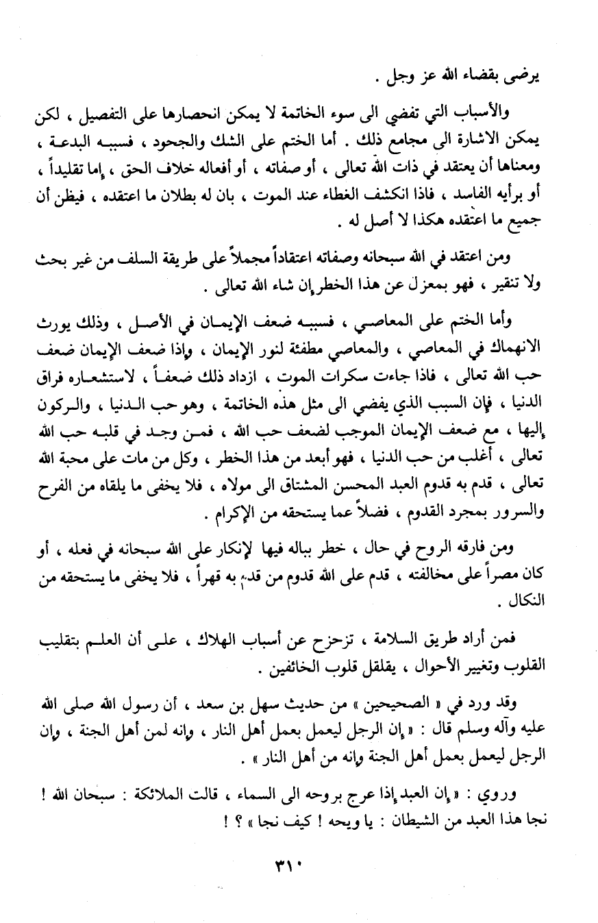وقد ورد في "الصحيحين" من حديث سهل بن سعد، أن رسول الله صلى الله عليه وآله وسلم قال: "إن الرجل ليعمل بعمل أهل النار، وإنه لمن أهل الجنة، وإن الرجل ليعمل بعمل أهل الجنه وإنه من أهل النار".