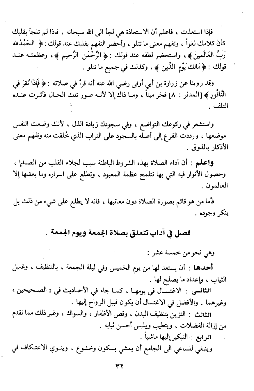 2 ـ فصل في آداب تتعلق بصلاة الجمعة ويوم الجمعة