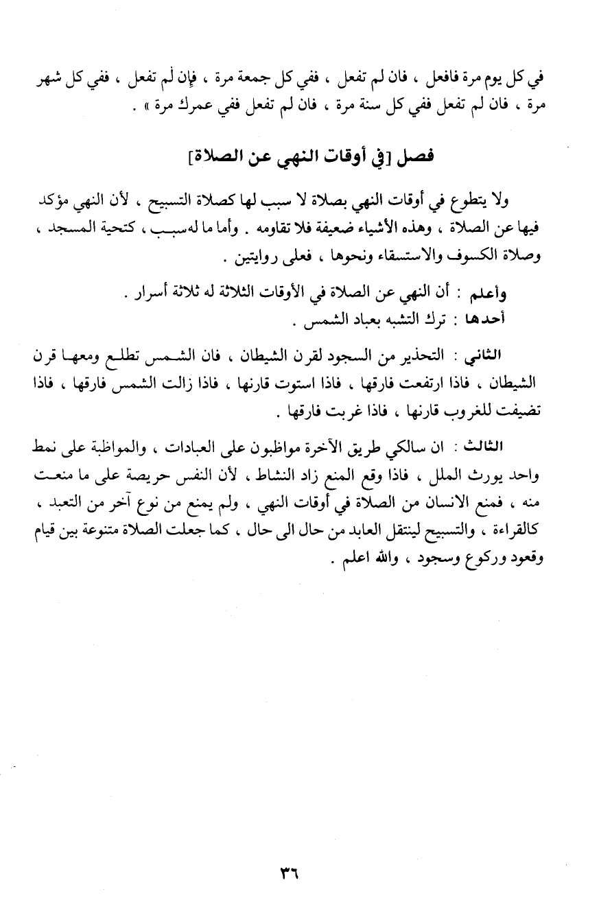 4 ـ فصل [فى أوقات النهي عن الصلاة]