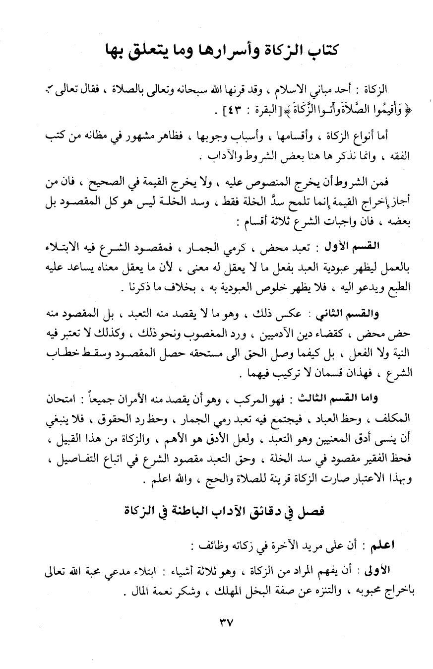 كتاب الزكاة وأسرارها وما يتعلق بها
