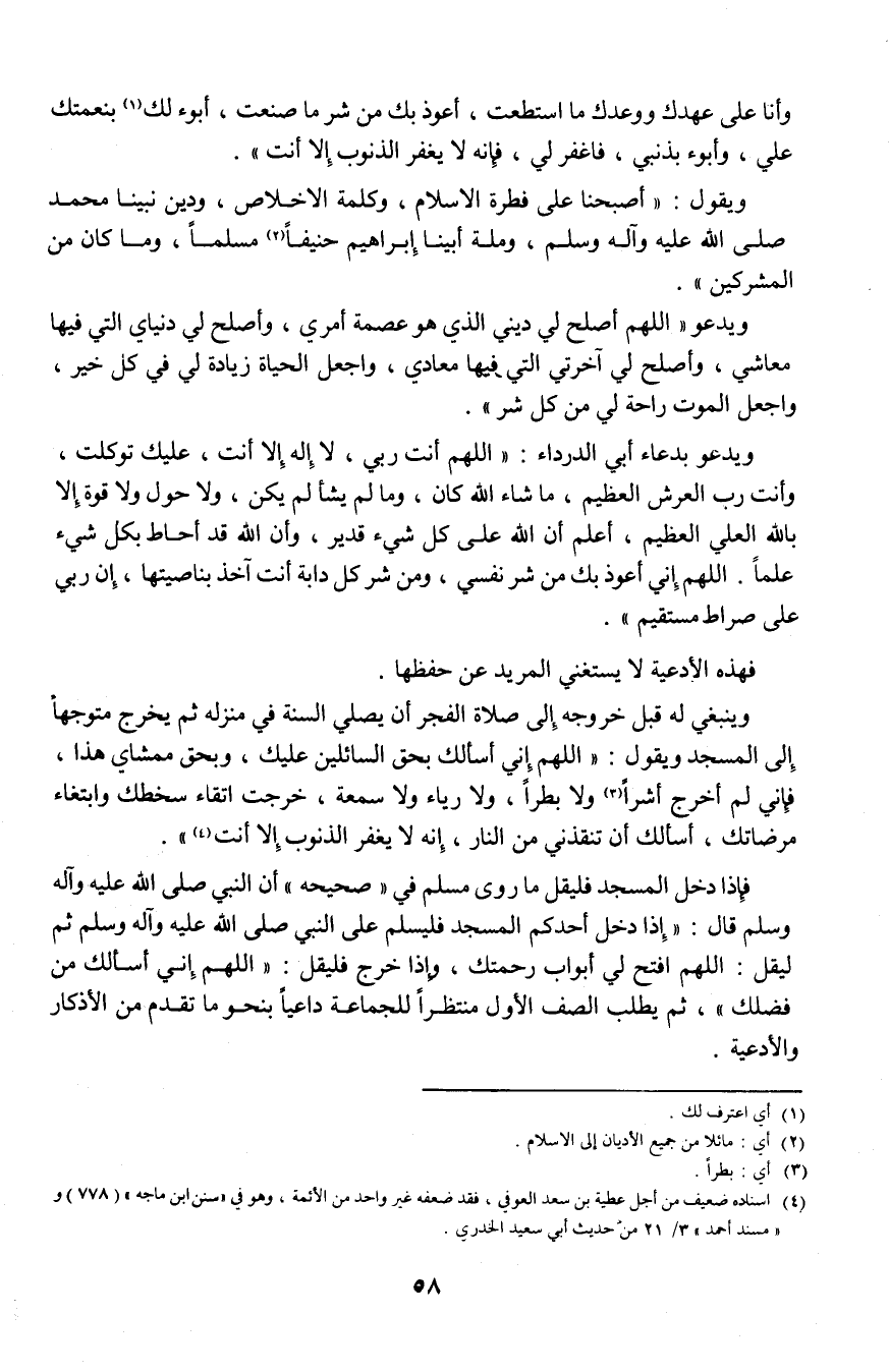 ويقول: "أصبحنا على فطرة الإسلام، وكلمة الإخلاص، ودين نبينا محمد صلى الله عليه وآله وسلم، وملة أبينا إبراهيم حنيفاً (¬2) مسلماً، وما كان من المشركين".
