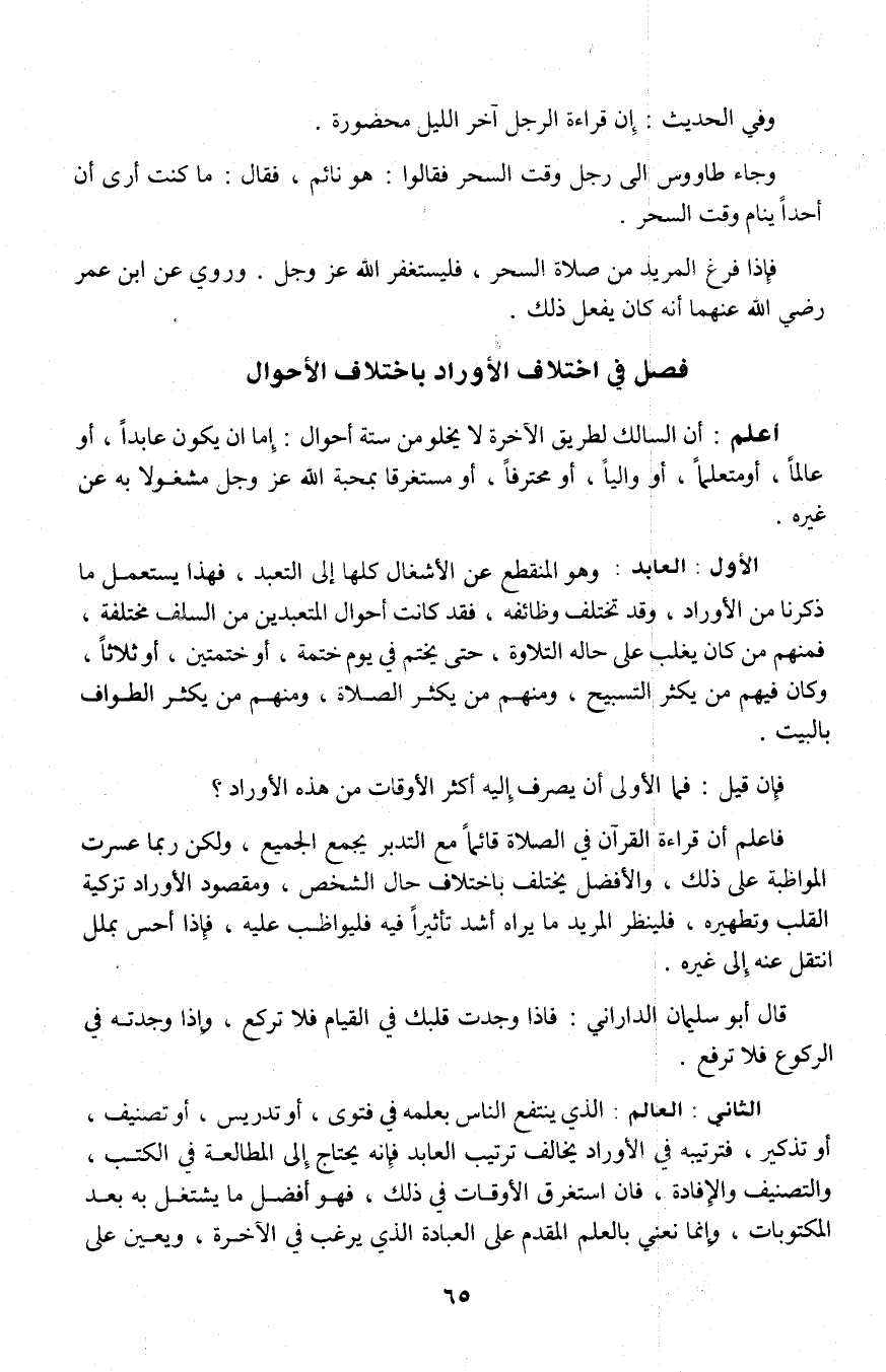 4 ـ فصل في اختلاف الأوراد باختلاف الأحوال