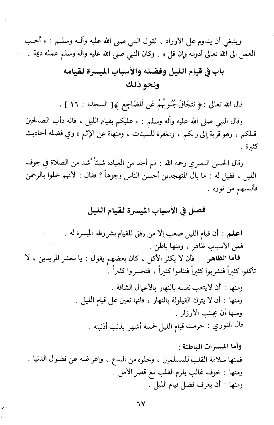 5 ـ باب في قيام الليل وفضله والأسباب الميسرة لقيامه ونحو ذلك